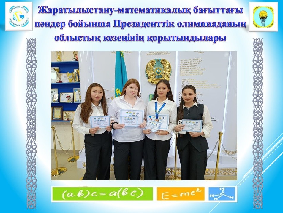 Жаратылыстану-математикалық бағыттағы пәндер бойынша Президенттік олимпиаданың облыстық кезеңінің қорытындылары 2025 жылғы 5–7 қазан аралығында Степногорск қаласындағы №4 «Болашақ» мектеп-лицейі базасында 11-сынып оқушылары арасында жаратылыстану-математикалық бағыттағы пәндер бойынша Президенттік олимпиаданың облыстық кезеңі өтті.